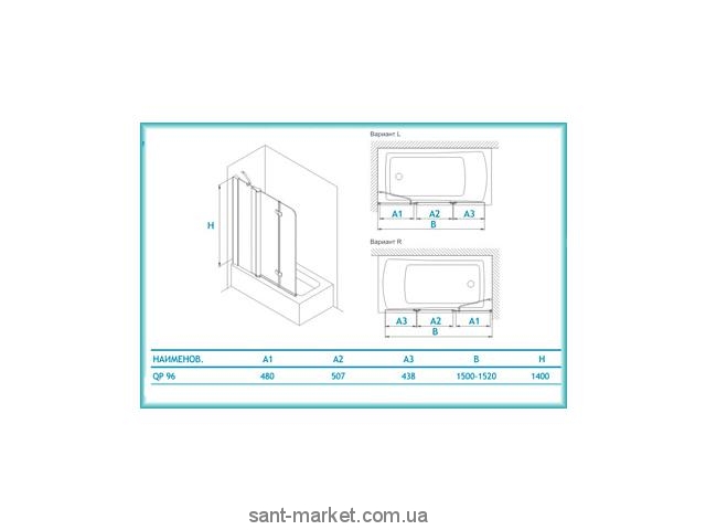 Koller Pool ШТОРКА НА ВАННУ QP96 (left)
