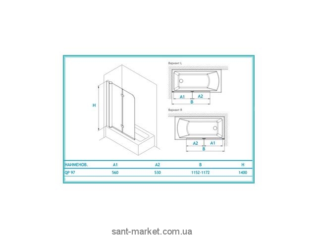 Koller Pool ШТОРКА НА ВАННУ QP97 (right)