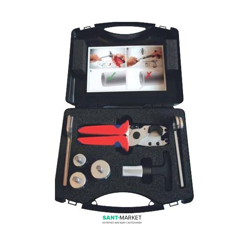 Комплект інструментів TECElogo призначений для монтажу вручну з'єднань труб із зшитого поліетилену TECElogo розміром від 32 до 50 мм з фітингами тієї ж лінійки. Всі елементи виконані з металу, відрізняютьсявисокою міцністю, надійністю і безвідмовністю.