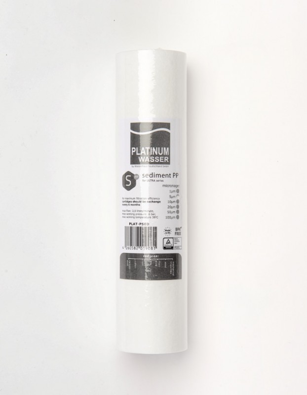 1 картридж - Поліпропіленовий картридж Platinum Wasser 5 мікрон видаляє великі частинки пилу, мулу, зважених речовин і іржі, поліпропіленовий фільтр відрізняється винятковимякістю затримки зважених речовин. Механіка - седіментний картридж з поліпропілену - ефективно видаляє механічні забруднення: мул, пісок, осад, іржу. Картридж призначений для грубої очистки.