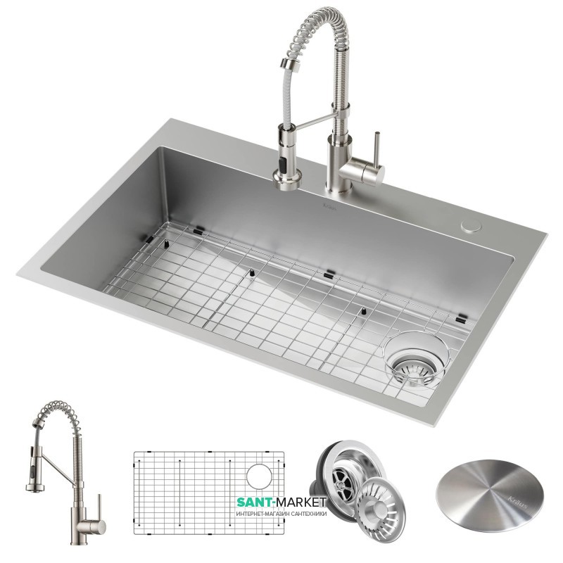 Комплект кухонний Kraus Loften мийка зі змішувачем і гратами нержавіюча сталь