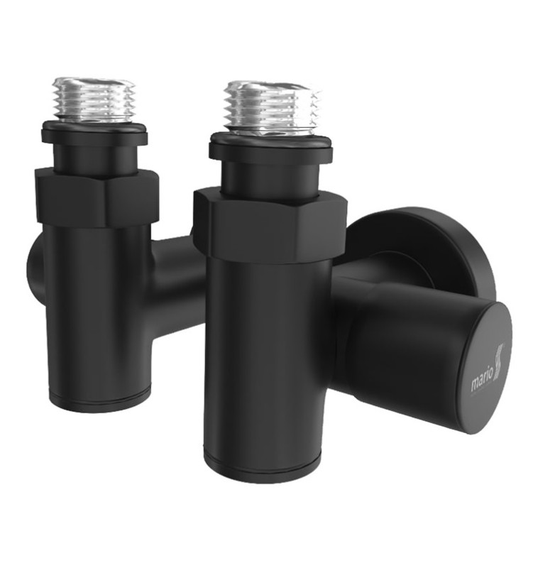 Комплект кутових кранів для сушки для рушників Mario під ТЕН чорний матовий 4820111357536