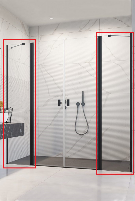 1) Комплект нерухомих елементів душових дверей Radaway Nes Black DWD II 87х200 см чорний/прозоре скло