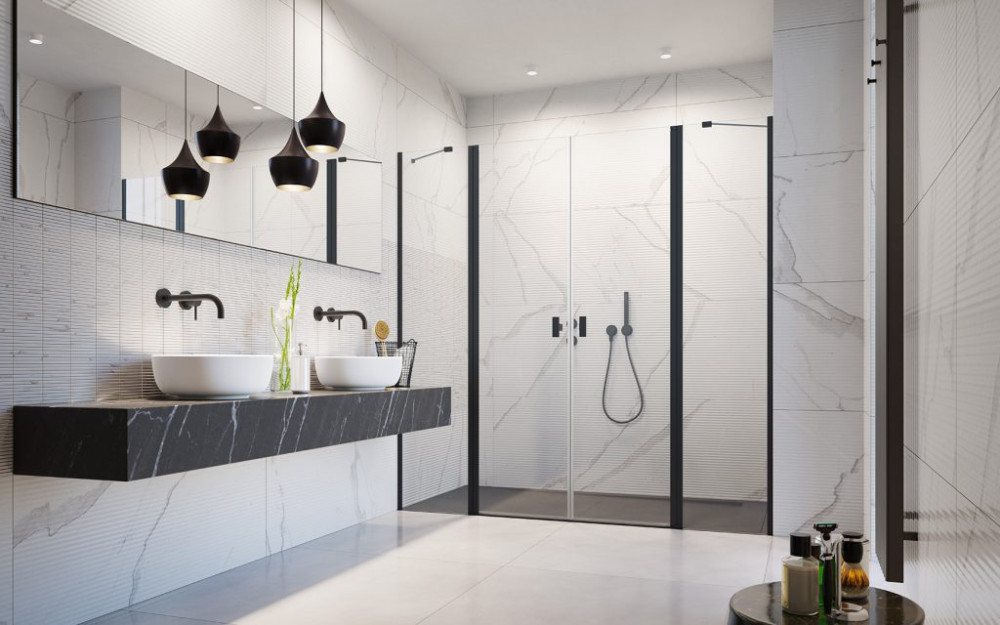 Nes Black— це кабіни, двері та шторки на ванну — із фурнітурою у кольорі «Black».