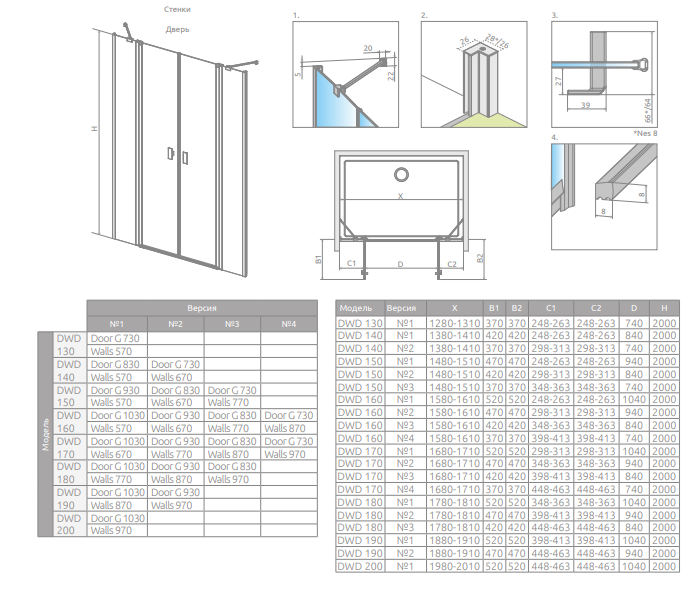 - Модель DWD можна замовити у кількох варіантах – з більш широким або вузьким входом. Дивіться таблицю на технічному малюнку.