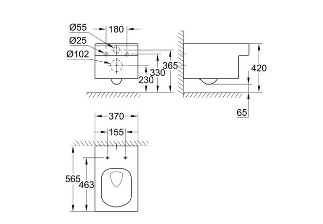 - для підвісних унітазів з опорною поверхнею менше 205 мм