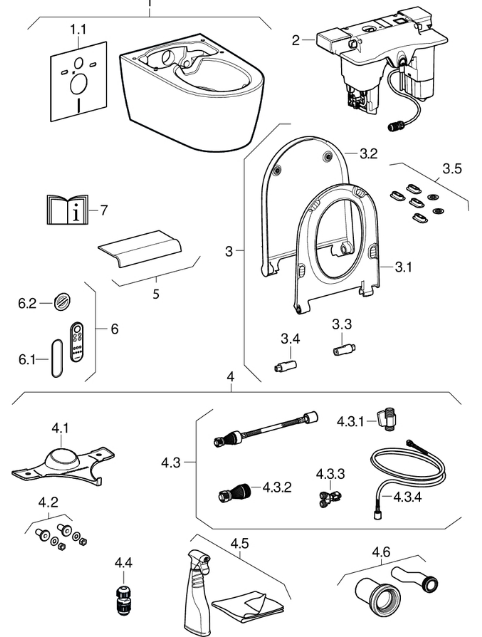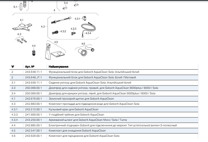 1) Комплект з'єднувальних патрубків Geberit AquaClean Sela