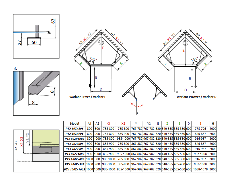 Зверніть увагу! Для створення душової кабіни необхідно 2 елементи: нерухомі стінкиRadaway Essenza New PTJ ZхS і двері Radaway Essenza New PTJ. Strong>