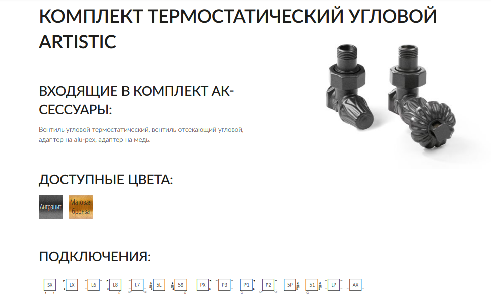 Комплект Теrma ARTISTIC термостатичний регулюючий кутовий антрацит TGETAN002