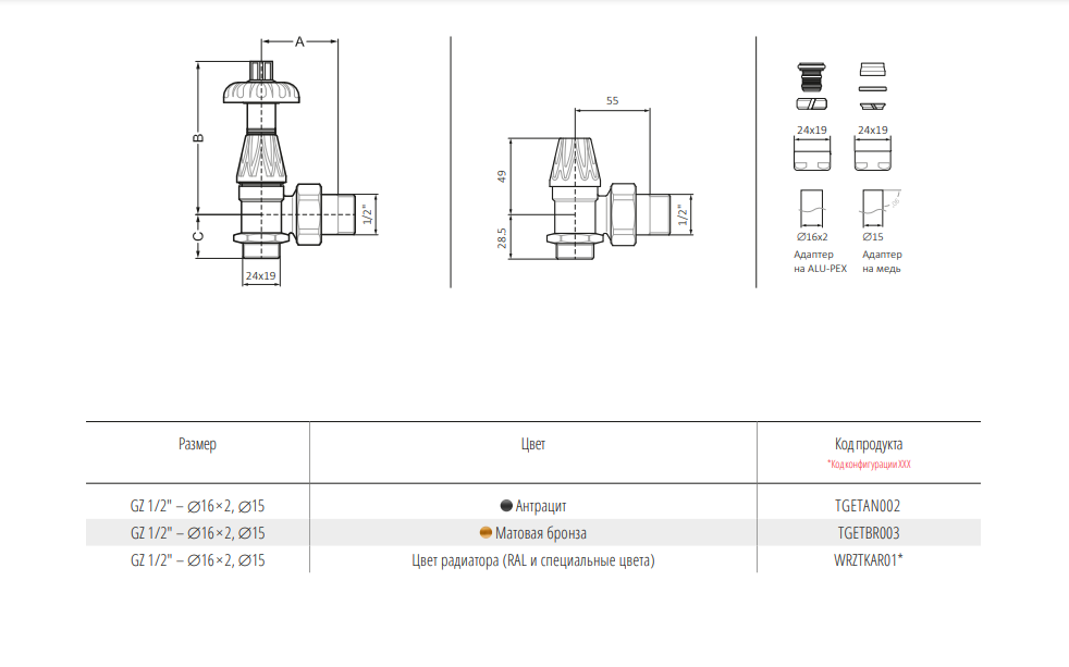 Комплект Теrma ARTISTIC термостатичний регулюючий кутовий матова бронза TGETBR003