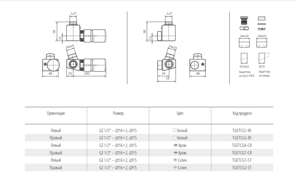 Комплект Теrma Dexter термостатичний трьохосьовий правий білий TGETCG2-BI