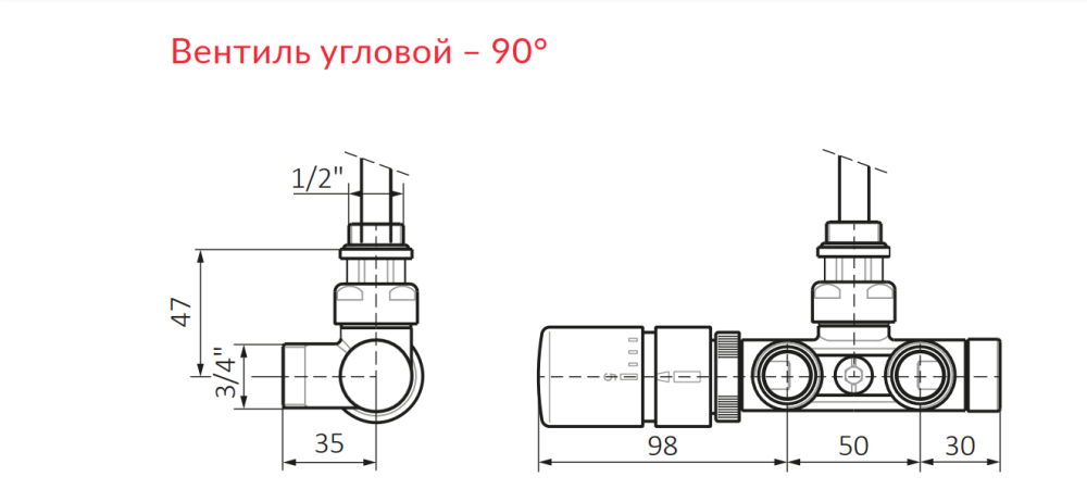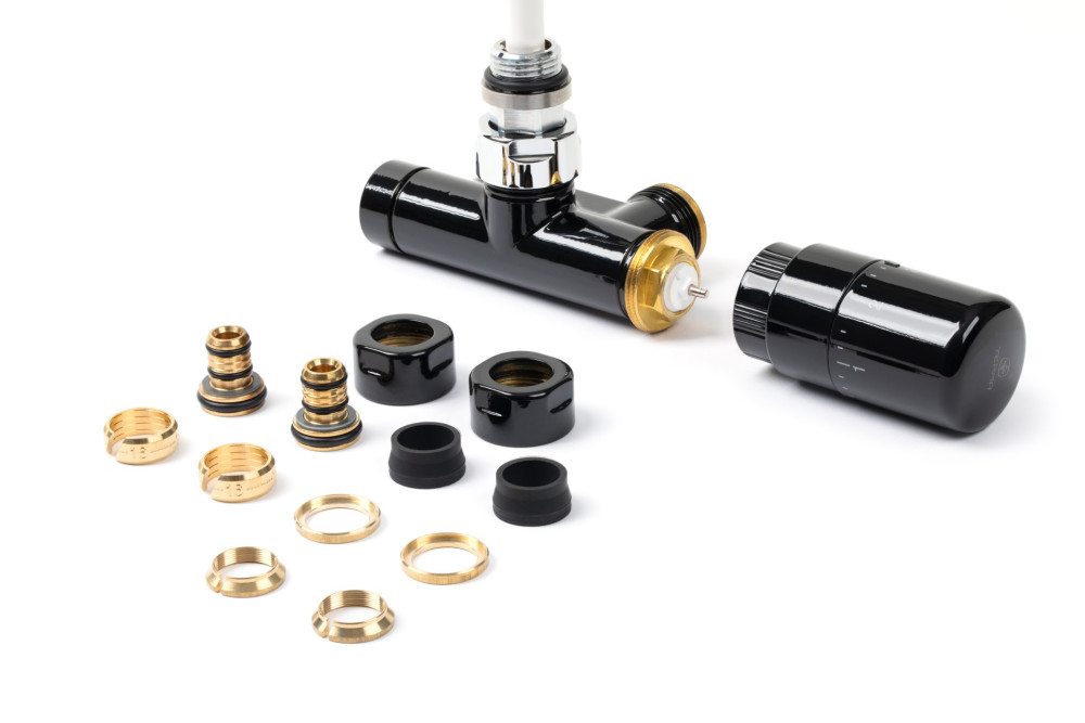 Комплект Теrma інтегрований термостатичний кутовий з трубкою лівий латунь чорний WRZT5G5-CZ