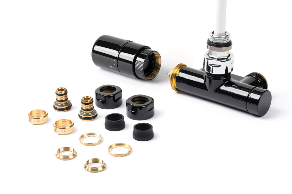 Комплект Теrma інтегрований термостатичний кутовий з трубкою правий латунь чорний WRZT5G6-CZ