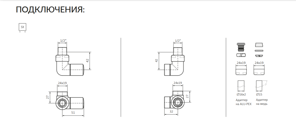 Комплект Теrma триосьовий регулюючий правий латунь чорний WRZRC32-CZ
