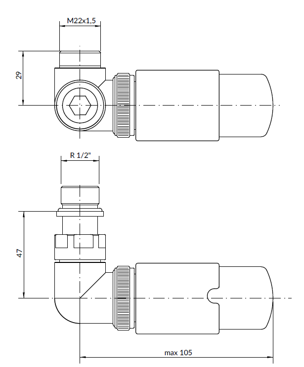 3) Термостатична головка M30×1,5