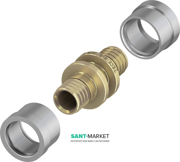 Прес-фітинг Teceflex муфта сполучна латунна застосовується як з'єднувальний елемент при монтажі трубопровідних систем водопостачання холодної та гарячої води, різних систем опалення (радіаторне, водяна тепла підлога) з металопластикової труби або поліетиленової труби, зокрема із зшитого поліетилену (PEX-с ). Висока надійність і міцність на стиск трубопровідної системи досягається завдяки технології аксиальной опресування з використанням насувної гільзи без застосування ущільнюючих кілець, це досягається в результаті ефекту молекулярної пам'яті труб PEX-с, після розширення або іншоговпливу на трубу структура матеріалу повертається в свою первинну форму, плюс фітинги TECEflex повнопрохідні і спеціально мають такий же внутрішній прохід як і труба, тому немає зменшення внутрішнього діаметру і гідравлічних втрат.