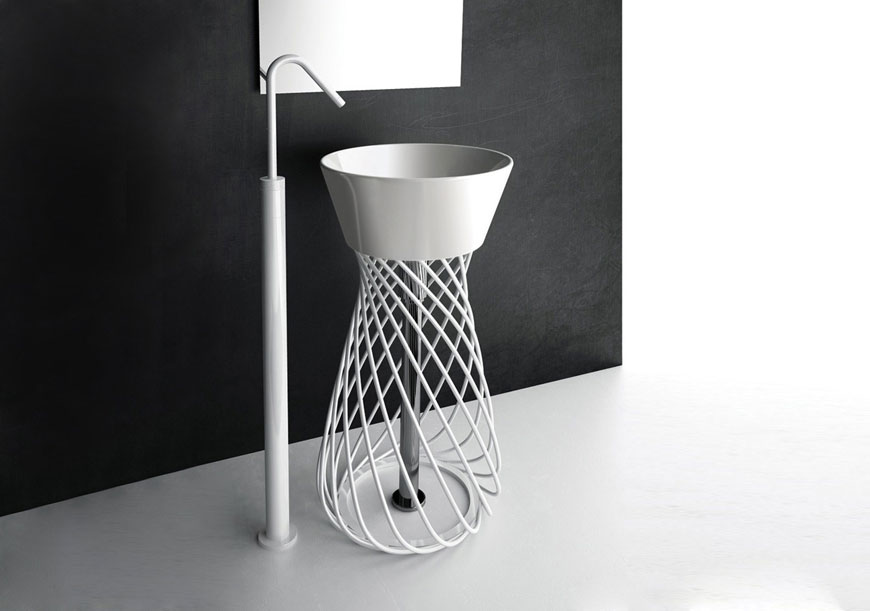 1) Консоль для раковини Hidra Wire метал білий глянцевий