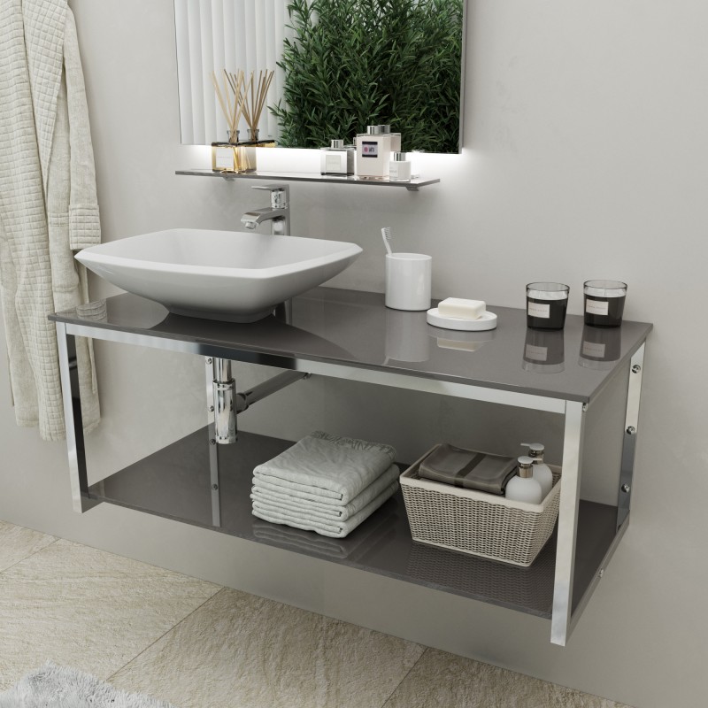 Консоль для раковини Marsan Quadro 110х50 см нержавіюча сталь / скло Бісмарк