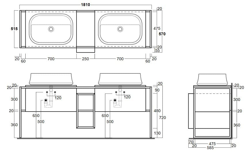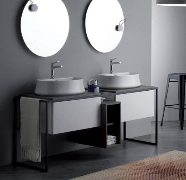 1) Консоль для раковини Simas Frame для підлоги 181х57 см білий матовий / сірий ясен