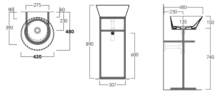 Консоль для раковини Simas Wave для підлоги 30х40 см метал чорний матовий
