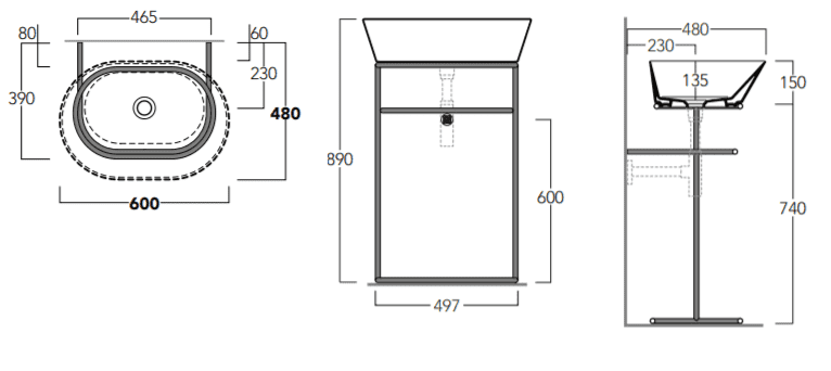 1) Консоль для раковини Simas Wave для підлоги 50х40 см метал чорний матовий