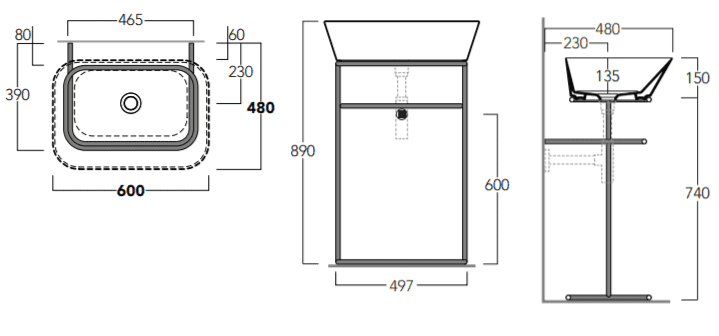 1) Консоль для раковини Simas Wave для підлоги 50х40 см метал чорний матовий