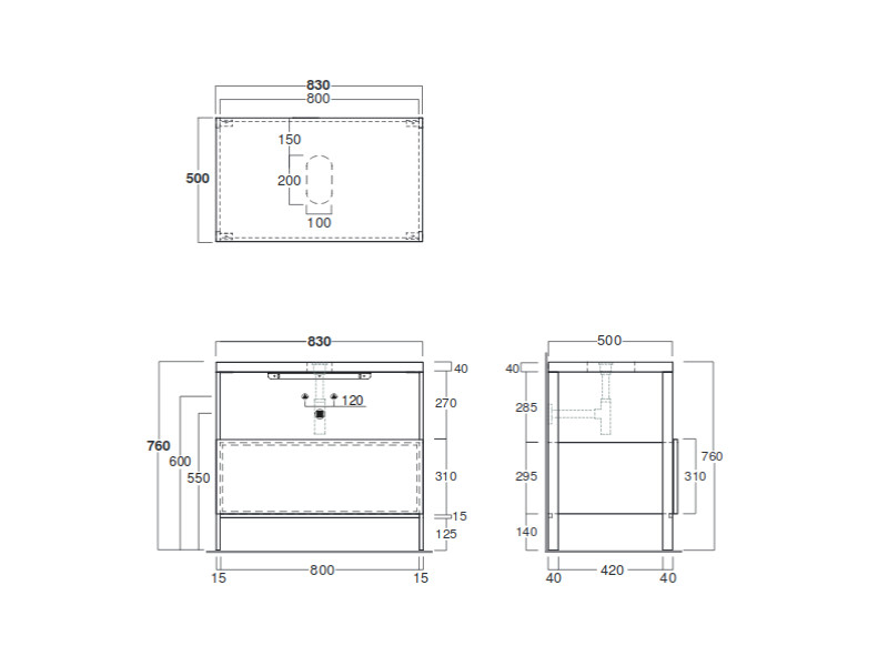 1) Консоль для раковини Simas Wave для підлоги 83х50 см дуб / цемент