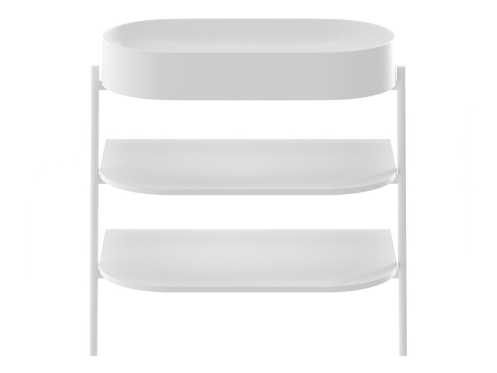 меблі з відкритим двором складається з стабільної металевої конструкції та двох полиць. Металева конструкція підлоги з поличками CS -ядра спеціально розроблена для дизайнера дворів40/60/80. Конструкція оснащена отвором для сифона та регульованими ногами. Полиці ідеально повторюють форму умивальника і забезпечують достатньо місця для зберігання. Світловий уступ верхньої частини металевих ніг служить зручним місцем для вивішення рушника.