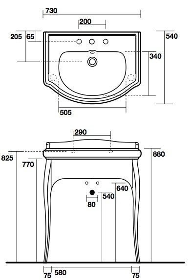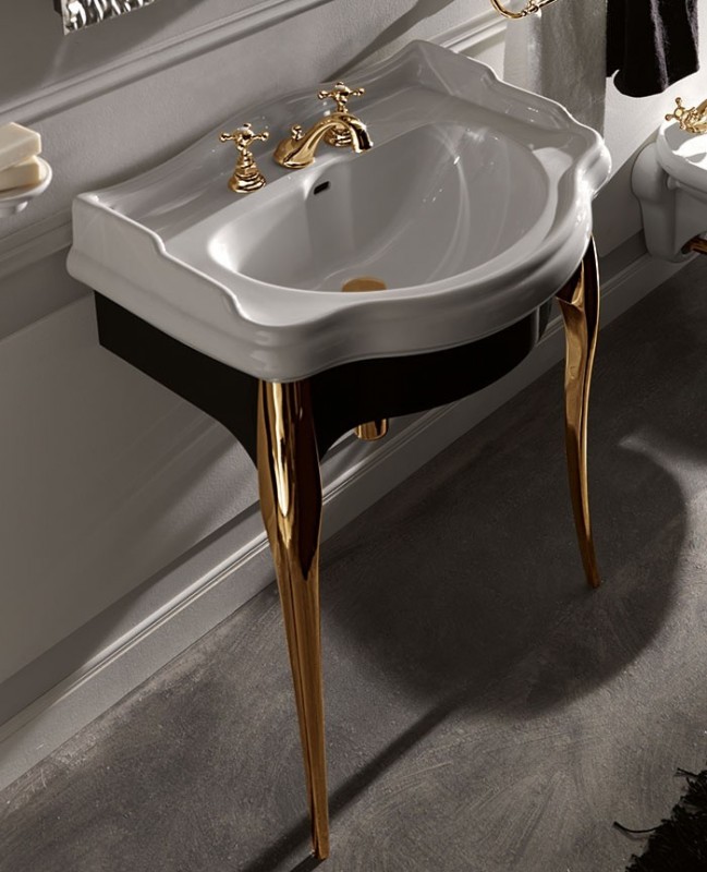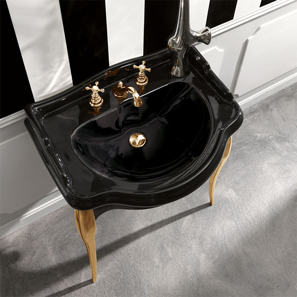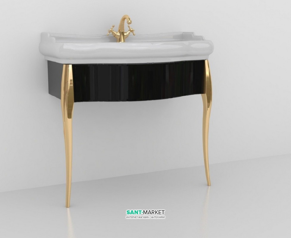 Консоль під раковину Kerasan Retro 73 см чорний глянсовий ніжки золото