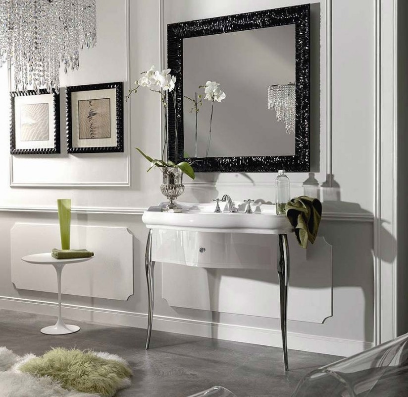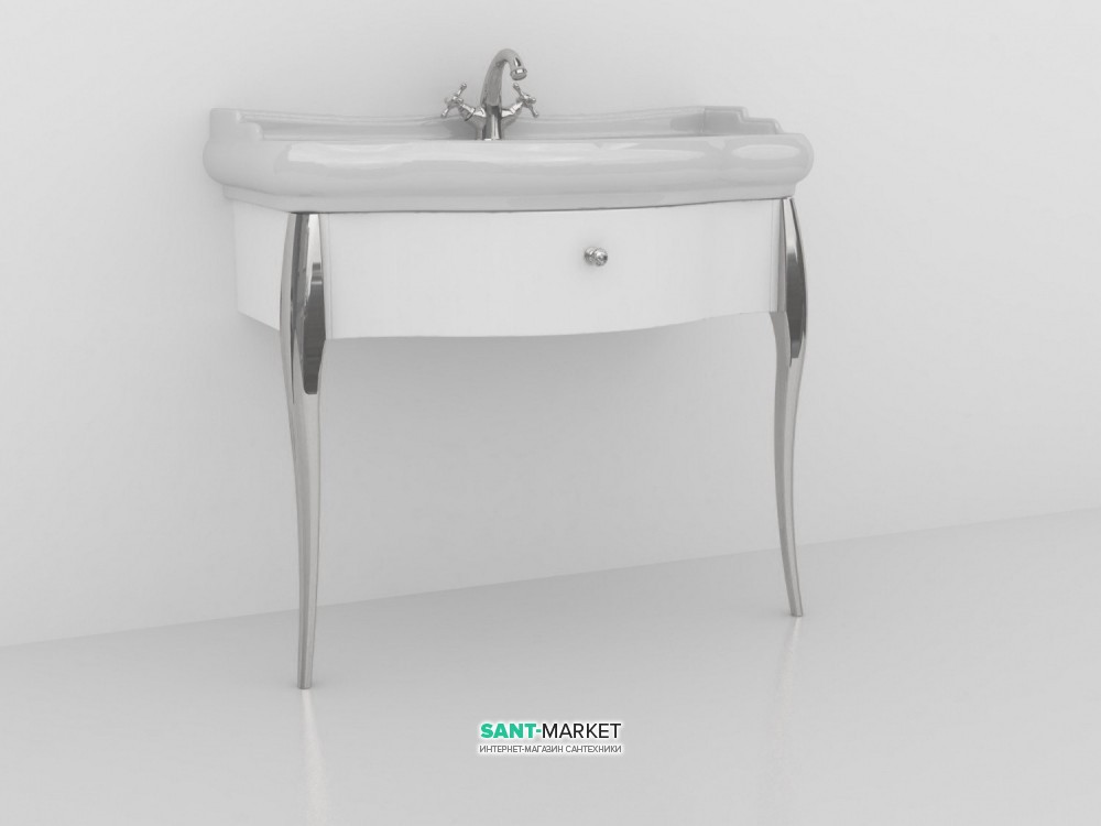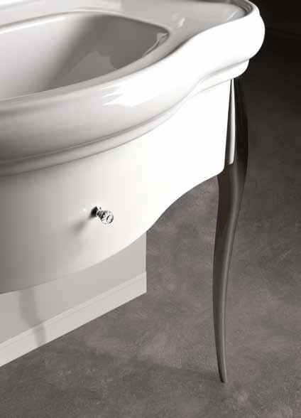 Консоль під раковину Kerasan Retro білий глянсовий ніжки хром ручка хром з кристалом