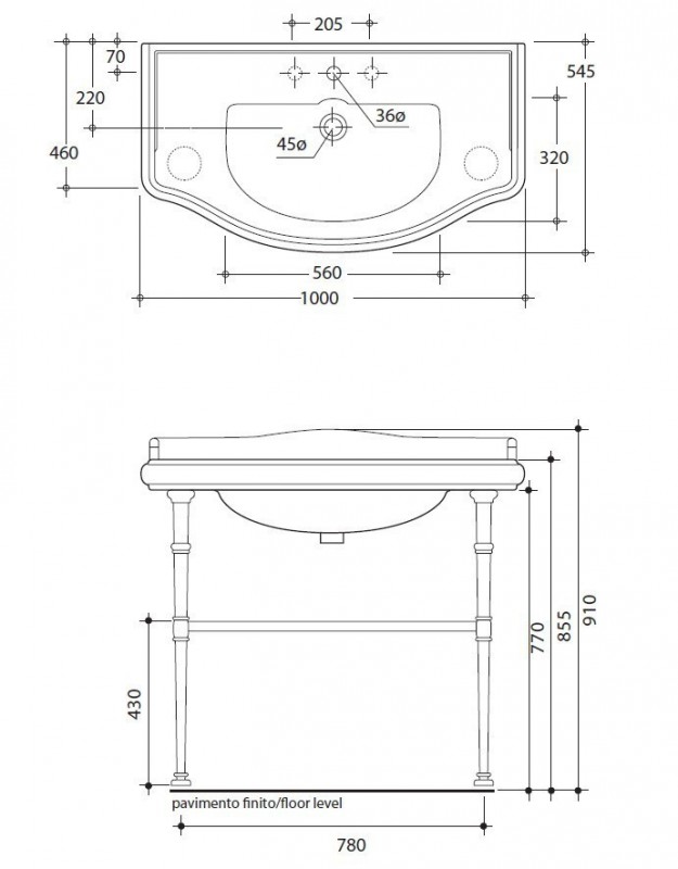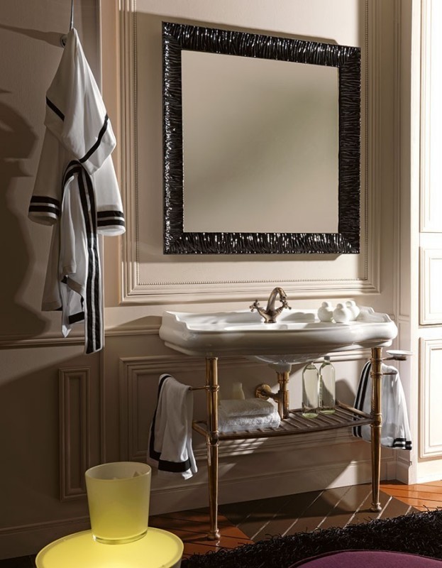 • Консоль для раковини з конічними ніжками і гратчастої полицею