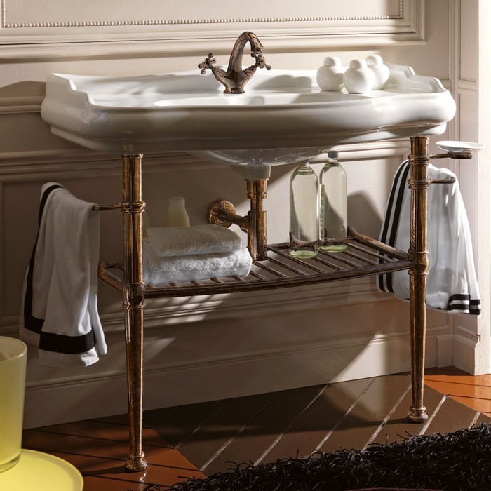 Консоль під раковину Kerasan Retro з конічними ніжками і гратчастої полицею бронза