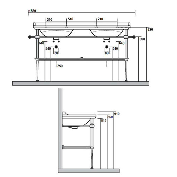 Консоль під раковину Kerasan Waldorf 150 см зі скляною полицею хром 9195K1