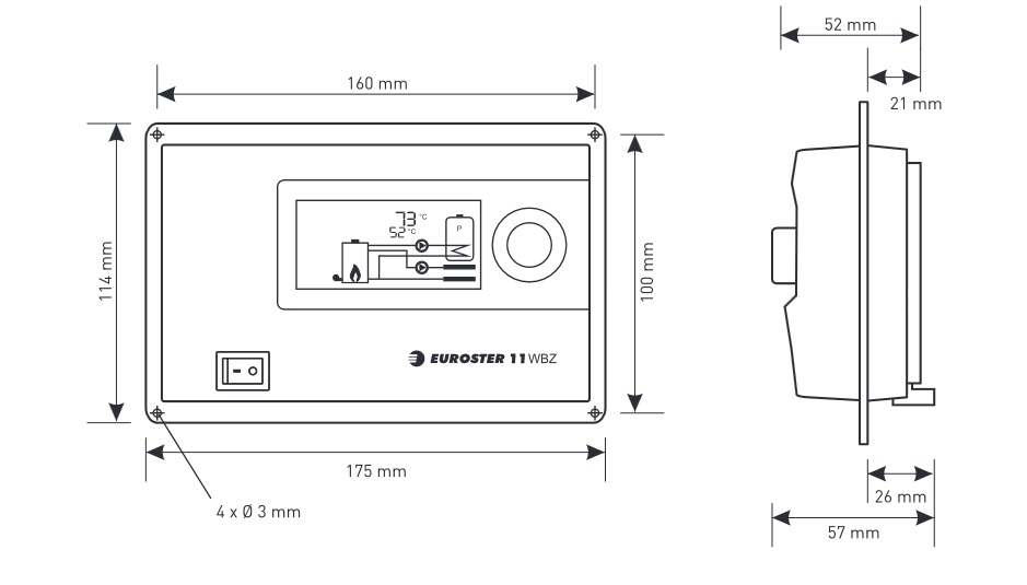 Euroster 11WB – це програмований контролер для спільної роботи з припливними котлами для дрібного вугілля та вугілля в установках, обладнаних баком для гарячої води. Контролер вимірює температуру котла та бака для гарячої води та, залежно від цихтемператур, регулює подачу повітря в піч та керує роботою насосів центрального опалення та гарячої води. У системі гарячої води контролер підтримує постійну температуру води у резервуарі з пріоритетом завантаження резервуара чи ні. Euroster 11WB оснащений системою захисту насоса Anti Stop, яка запобігає заклиненню ротора насоса, що не використовується. Після закінчення опалювального сезону система автоматично запускає насос кожні два тижні на 30 секунд (щоб система працювала після сезону, контролер слід залишити увімкненим). Модель адаптована для встановлення корпусу котла.