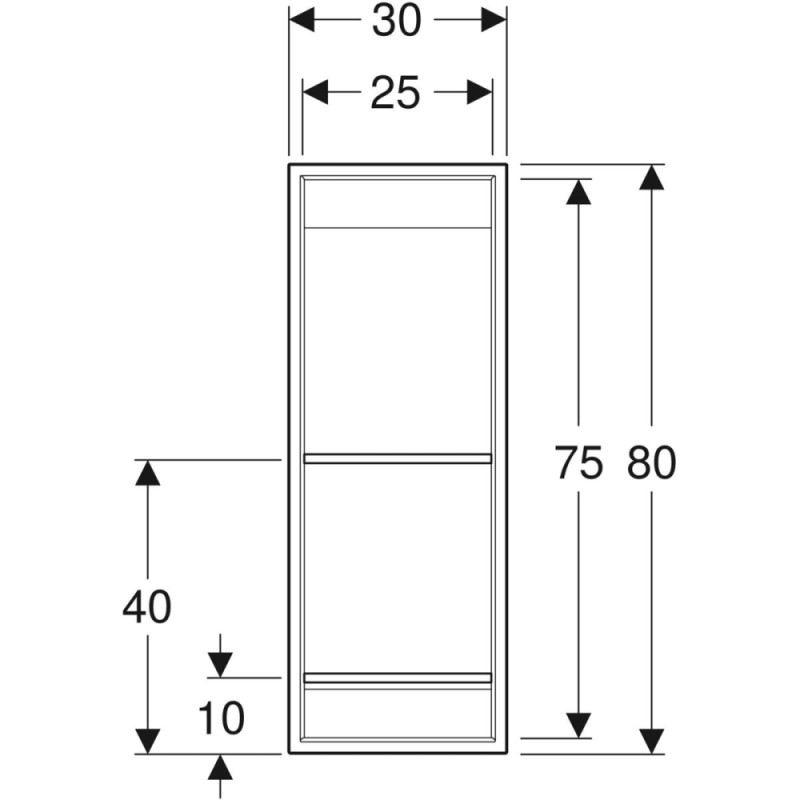 - Для встановлення в монтажні елементи Geberit для коробки для зберігання в ніші зі вставними полицями