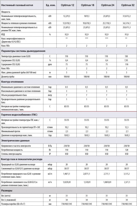 Котел настінний газовий , турбований, двоконтурний (опалення та гаряче водопостачання). Лінійка модифікацій з потужністю (СО) 12, 18, 24, 32 кВт.