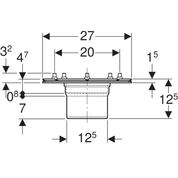 1) Кріпильний притискної фланець Geberit для трапів 13х13 см