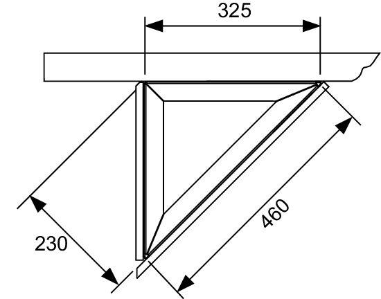 - Для монтажу модулів TECE з шириною рами 320 мм під кутом 45° в суцільну або гіпсокартонну стіну.