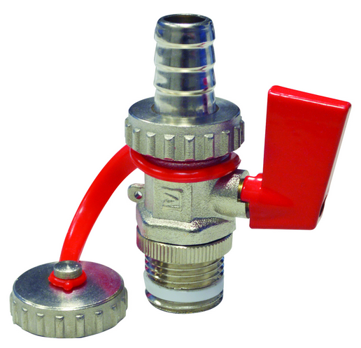 Нікельований кран KFEдля наповнення та зливу системи опалення. Обладнаний кришкою, підвішеною на ланцюгу. Штуцер для підключення шланга.
