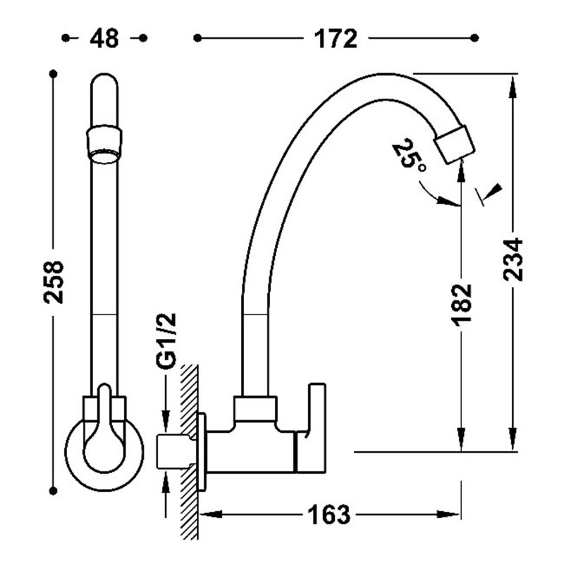 - одноважільний настінний кран для холодної води