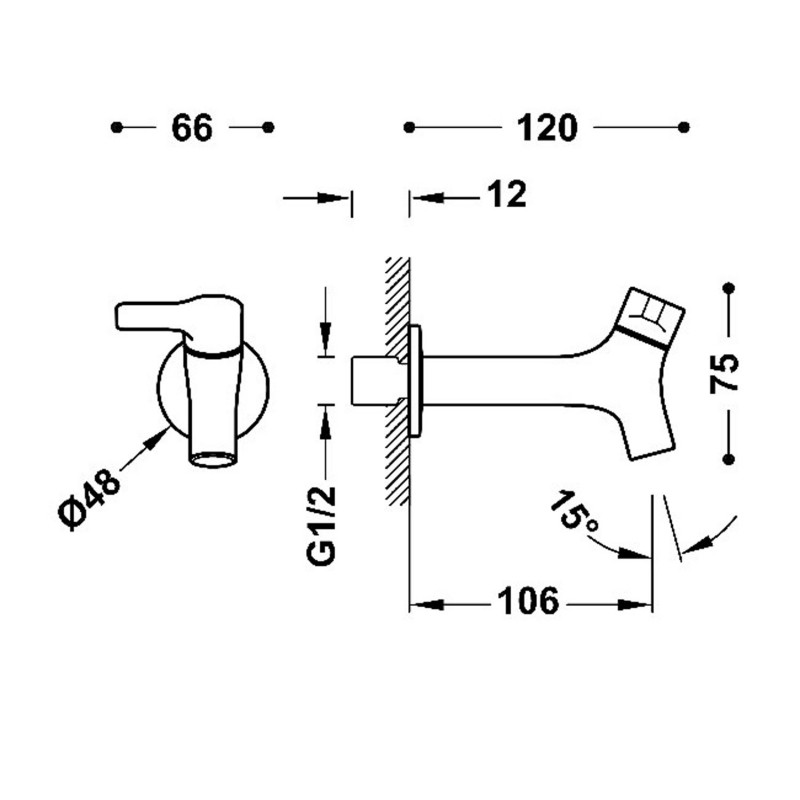 Кран для холодної води Tres Base одноважільний настінний хром 21552002