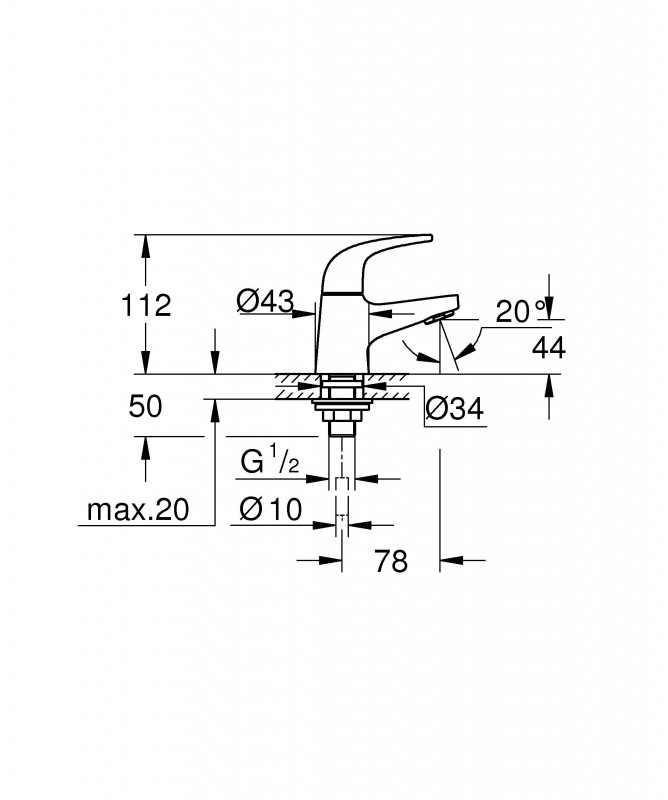 1) Кран для раковини Grohe StartCurve без функції змішувача