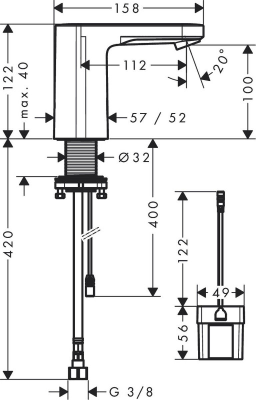 1) Кран для раковини Hansgrohe Vernis Blend електронний для однієї води