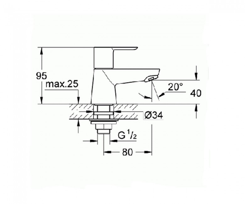 1) Кран для раковини на одну воду Grohe BauEdge змішувач хром