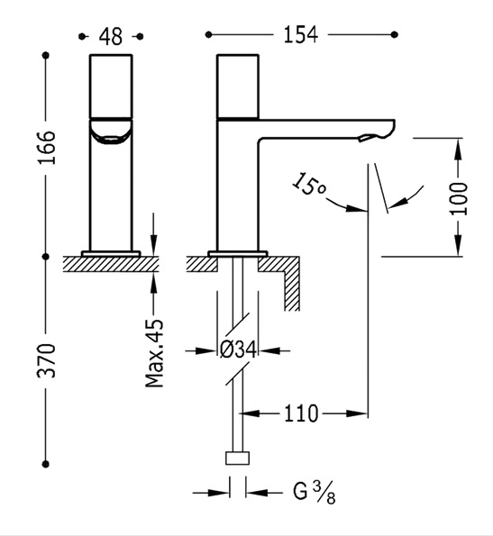 - Висота крана, мм: 166