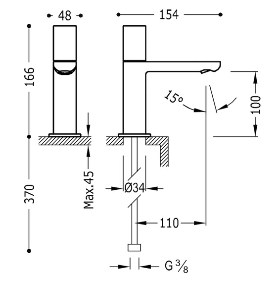 - Висота крана, мм: 166