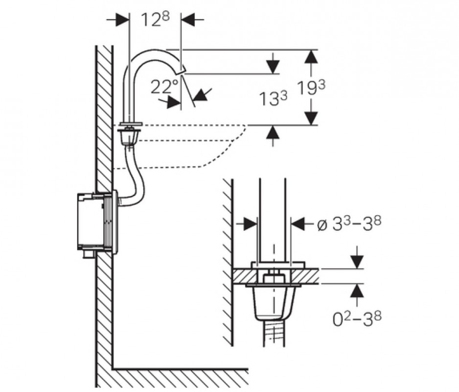 - Для монтажу в монтажні елементи Geberit для умивальника, вертикальний змішувач з функціональним блоком прихованого монтажу