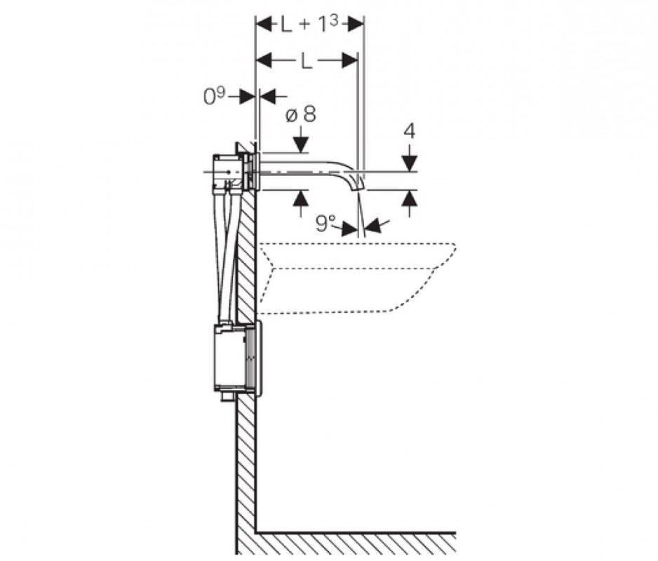 - Для вбудовування в монтажні елементи Geberit для умивальників і настінних змішувачів з функціональним блоком для прихованого монтажу