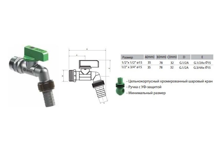 1) Кран кульовий Arco поливальний 1/2 "х1 / 2"