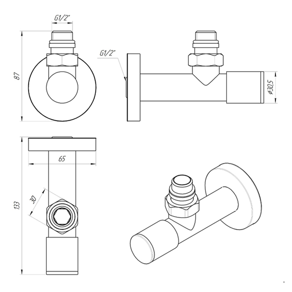 Кран кутовий для сушки для рушників Laris Luxon ZZ-5101 1/2 "-1/2" подовжений 71401048